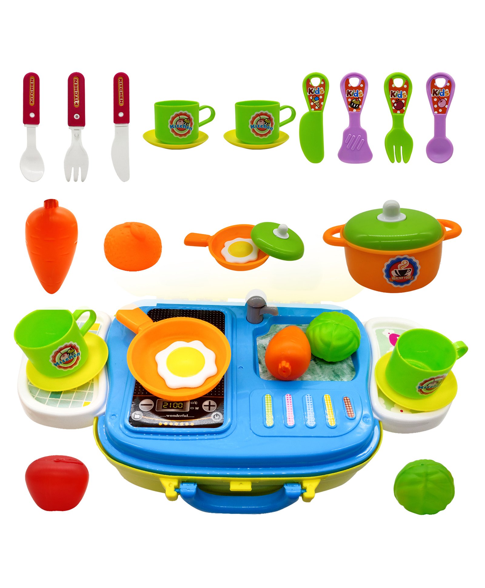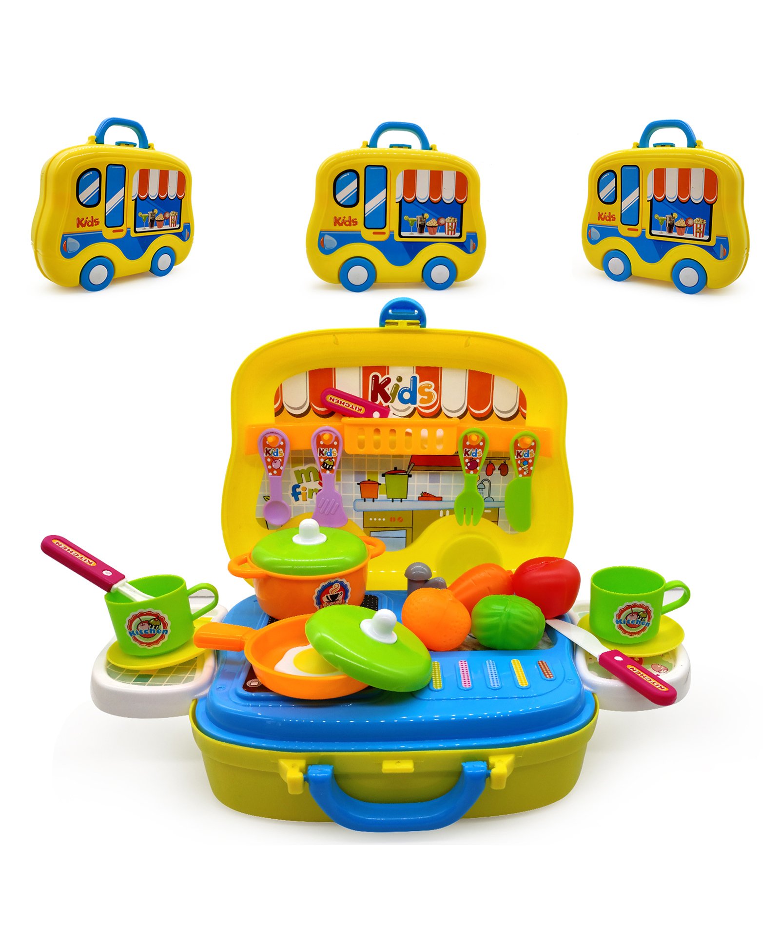 | Portable suitcase make it easy to organize . Easy to play and store. Kitchen Food Playset can be easily stored with the foldable carrying case. You don't need to worry about the pieces getting lost or damaged. |