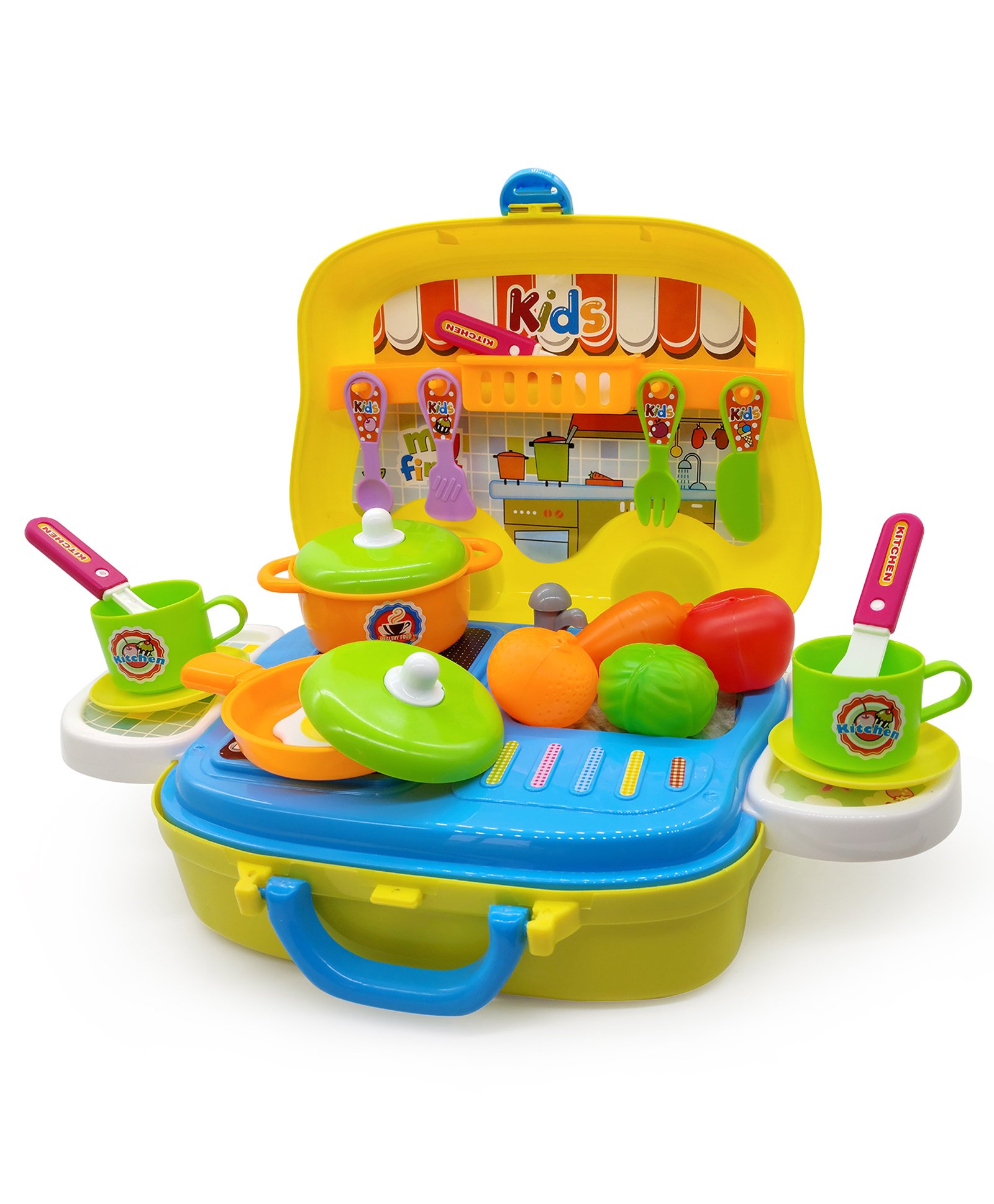 61% Off| Planet of Toys Kid Chef Bring Along Kitchen Cooking Suitcase Set (26 Pieces) - Multicolor |