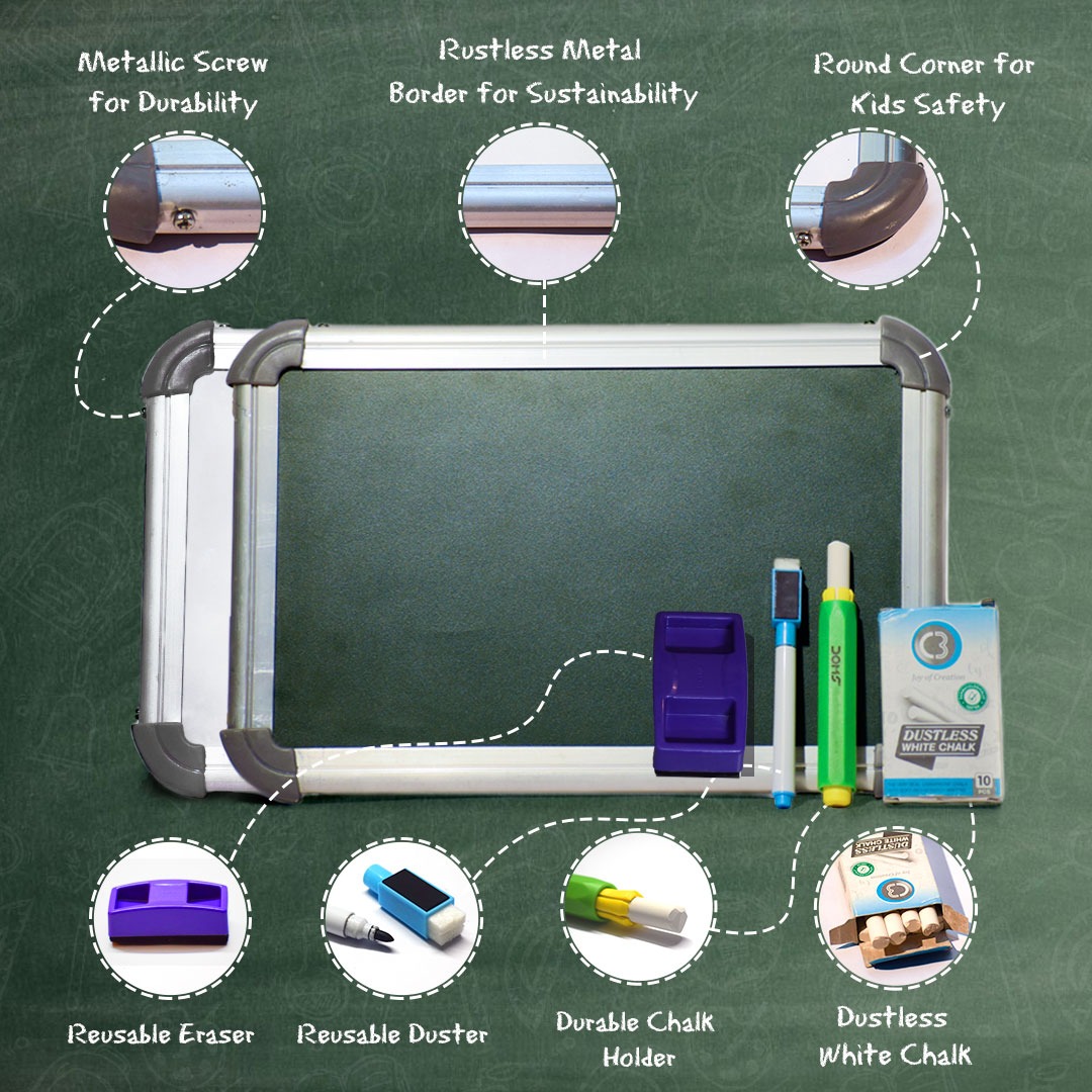 | Two sided educational writing / drawing board with slate & Green board for kids with Aluminium frame |