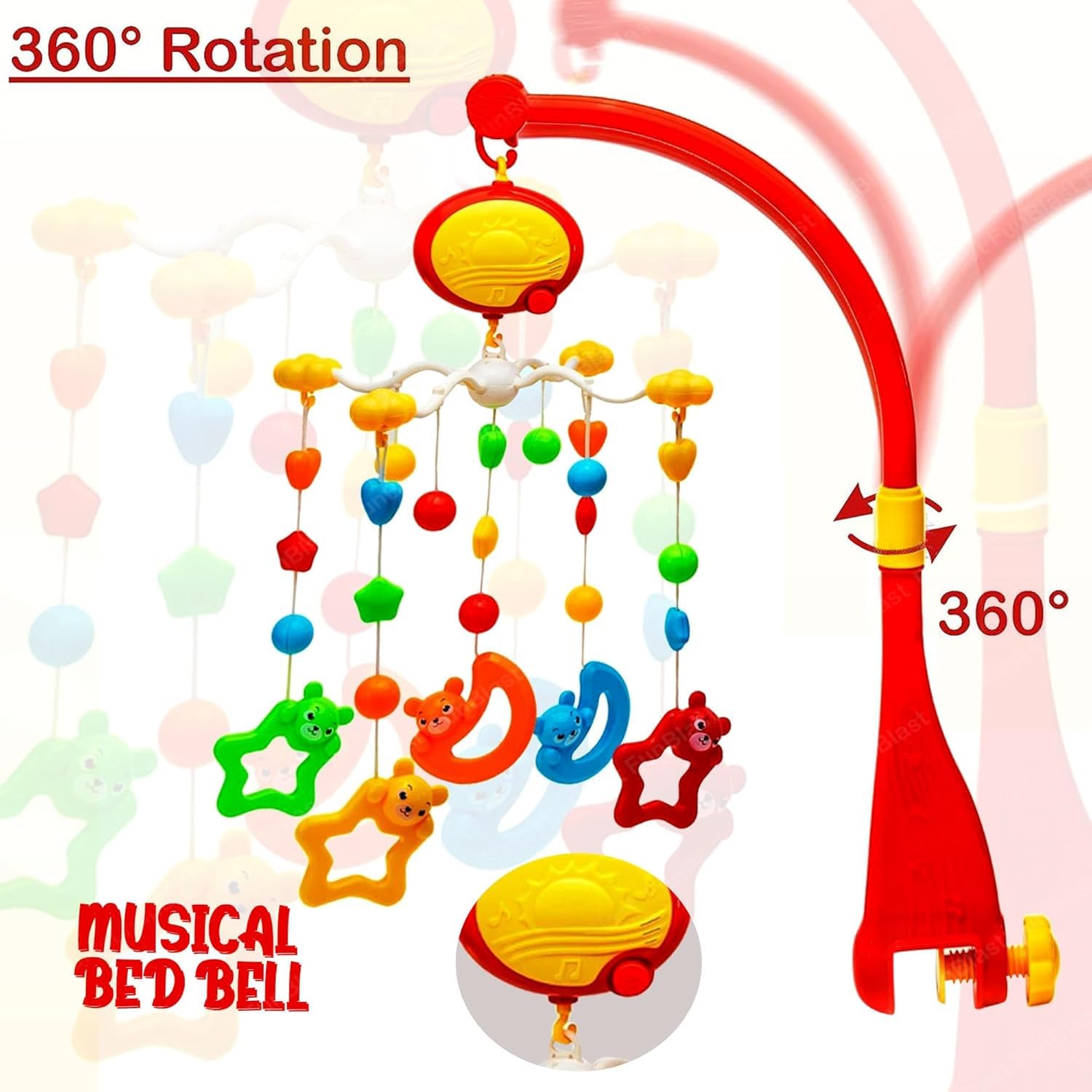 Suggestive Age 0 to 03 Months Easy for Little hands to grasp Product ID : POT-BEDBELL-GDY