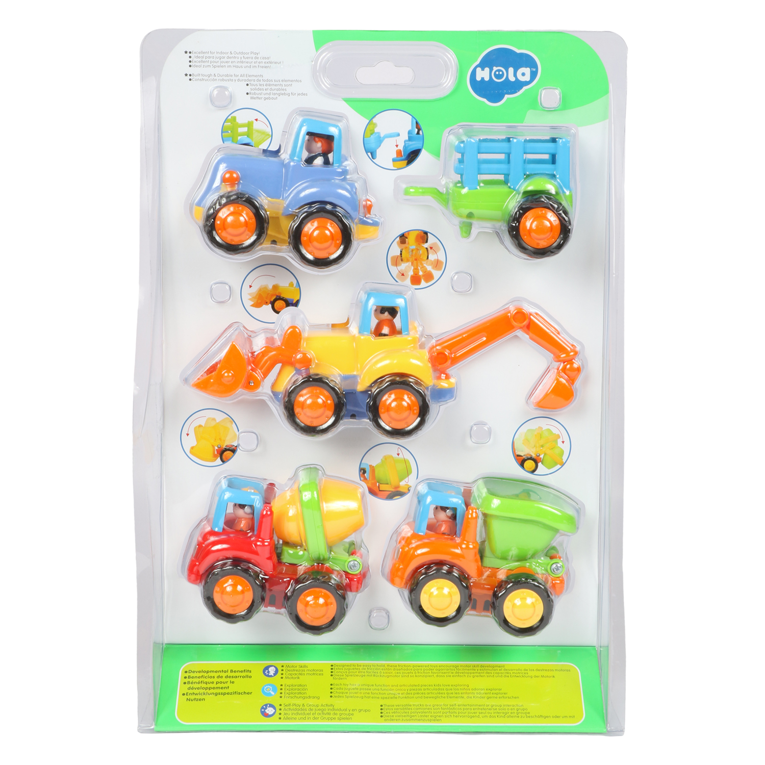 - This colorful push and go car toy playset is set of 4 construction vehicles: